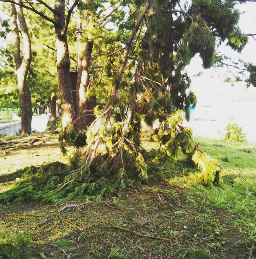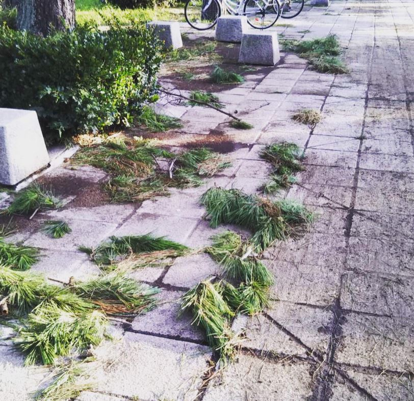 海岸の手前の歩道のところに、木が沢山植えられているのですが枝が落ちていました。
