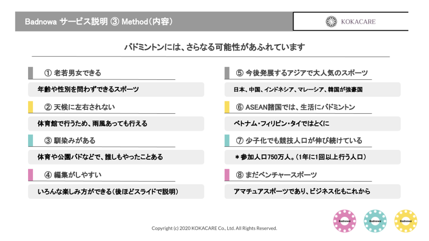 そんな企業の悩みを、バドミントンで解決しようというのが、今回立ち上げた『Badnowa』というサービスです。