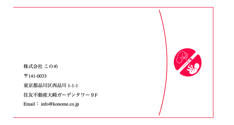 - ビジネスに慣れた人にとって名刺は肩書きと名前を読んで終わりですが、子どものようなフレッシュな目線で見ることができる人は細い線が「コノメ」という文字になっていることに気付けるようにデザインしています。