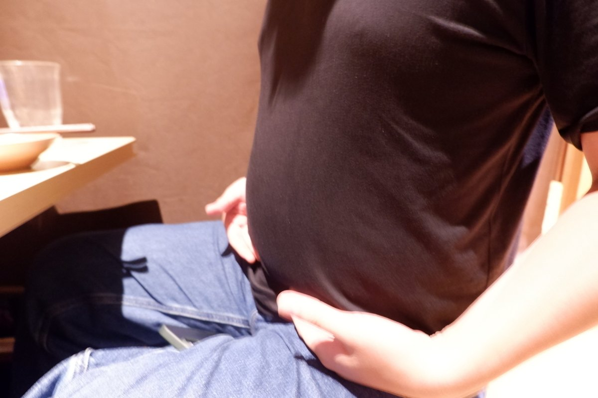 食べ放題終わってすぐの児玉くん、満腹界のマタニティフォト