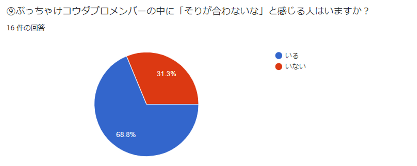 Q9.ぶっちゃけコウダプロメンバーの中に「そりが合わないな」と感じる人はいますか?