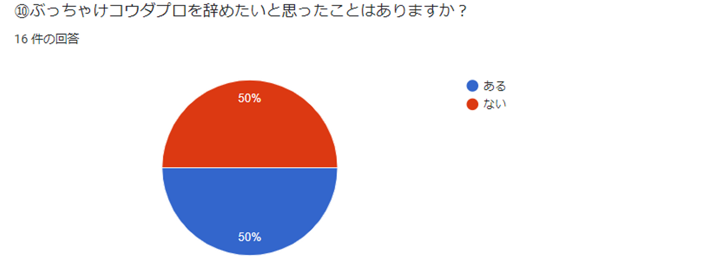 Q10.ぶっちゃけコウダプロを辞めたいと思ったことはありますか?