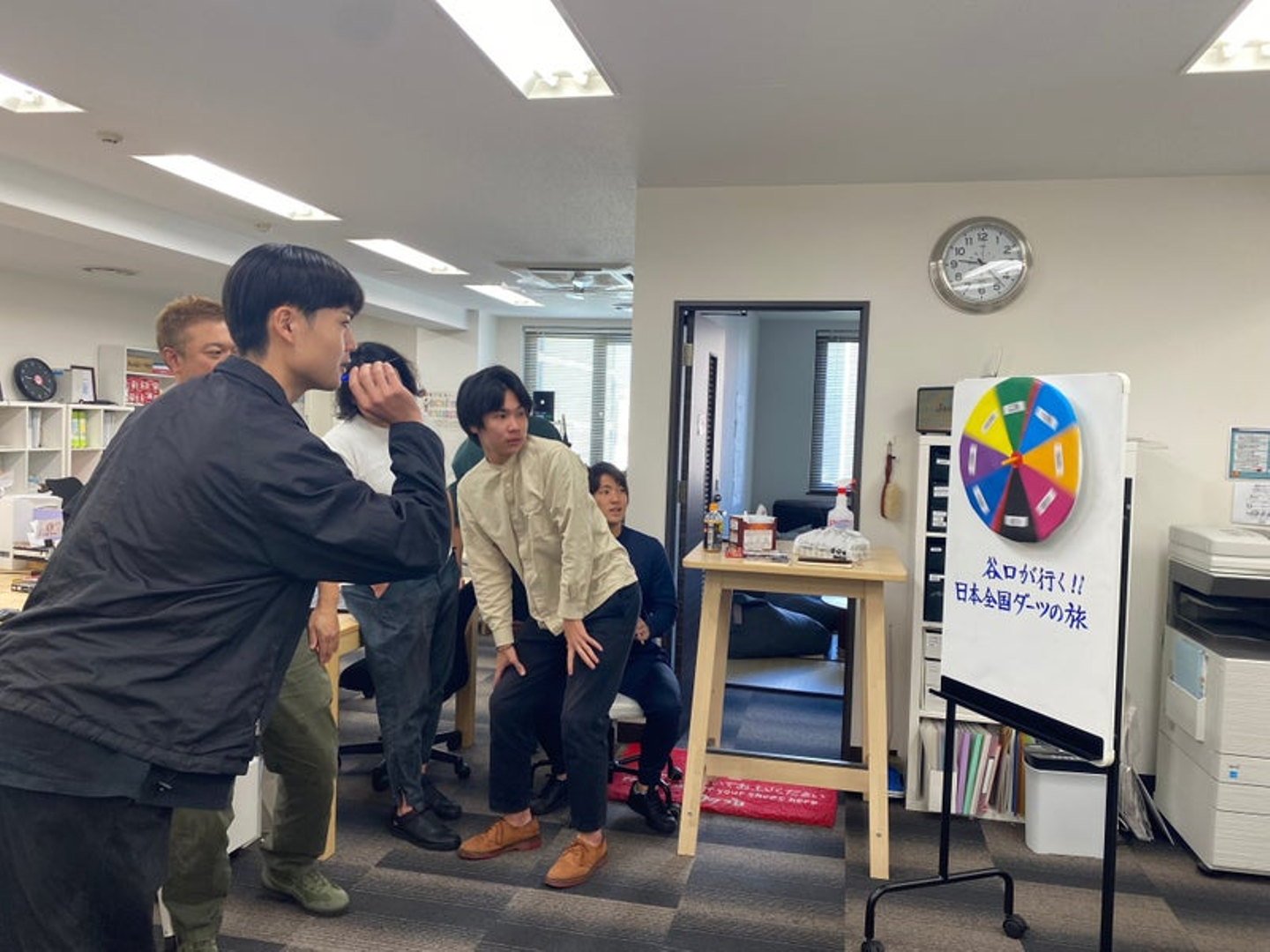 社長と部門長たちで「谷口くんが入社しましたがダーツの旅どうします?」との話に。
