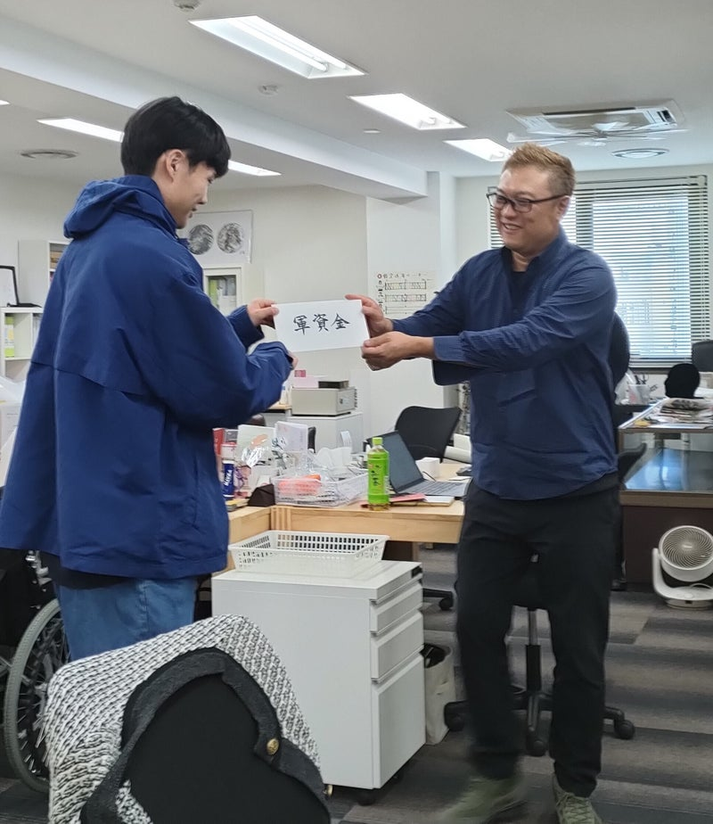 軍資金を社長から受け取り、京都へ旅立っていきました。