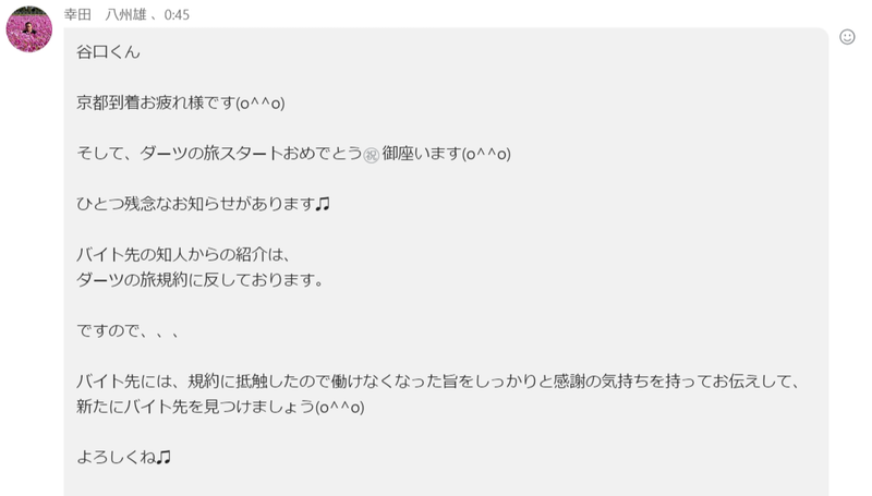 しかし、それを旅日記として社内に送ったところ、「アルバイトを知り合いから紹介してもらうこと」が研修のルールに抵触してしまい、アルバイトの話は白紙に…。