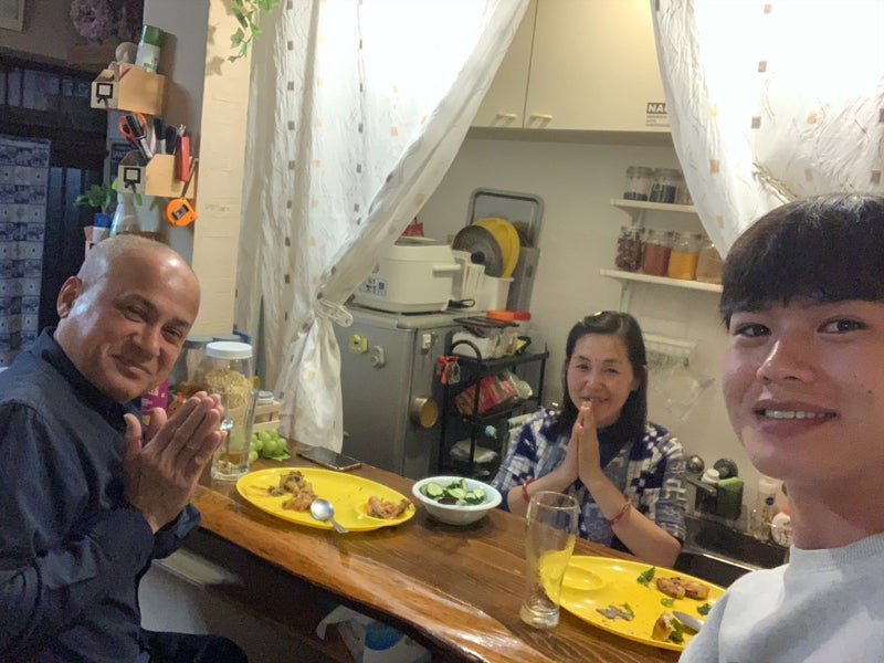 ホッとした気持ちでお店を後にし、勝ったお礼にとご飯に連れて行っていただき異文化交流を楽しんだようです。