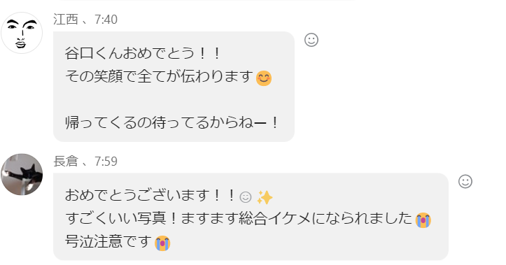 この旅での出来事を振り返って谷口くんは「人に恵まれた最高の出会い、経験、学びがあった旅だったと思います。これからの人生で絶対に忘れる事のない出来事であり、京都に行くことができて本当に良かったと心の底から思います。」とのことでした。