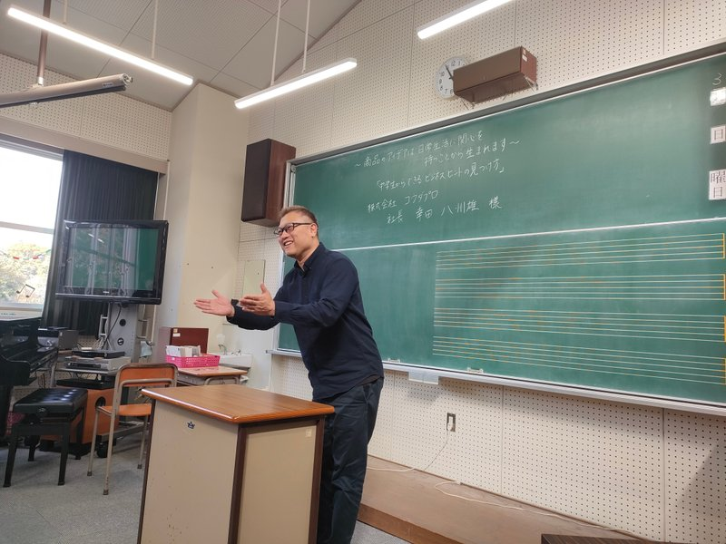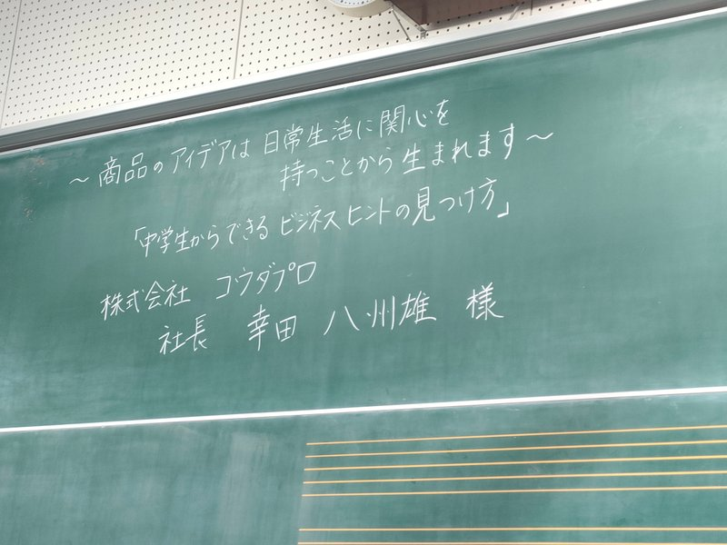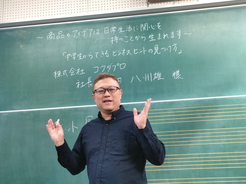 「~商品のアイデアは日常生活に関心を持つことから生まれます~『中学生からできるビジネスヒントの見つけ方』」というテーマの授業です!