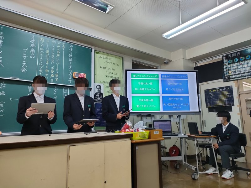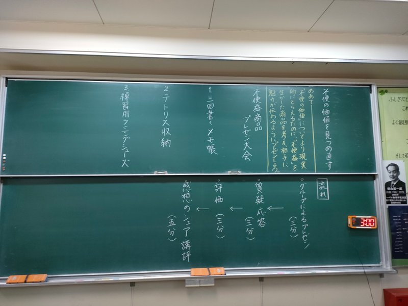 「不便益」を生かした商品を考えるだけでも立派なことですが、相手に魅力の伝わるプレゼンをしよう。が授業のテーマです。