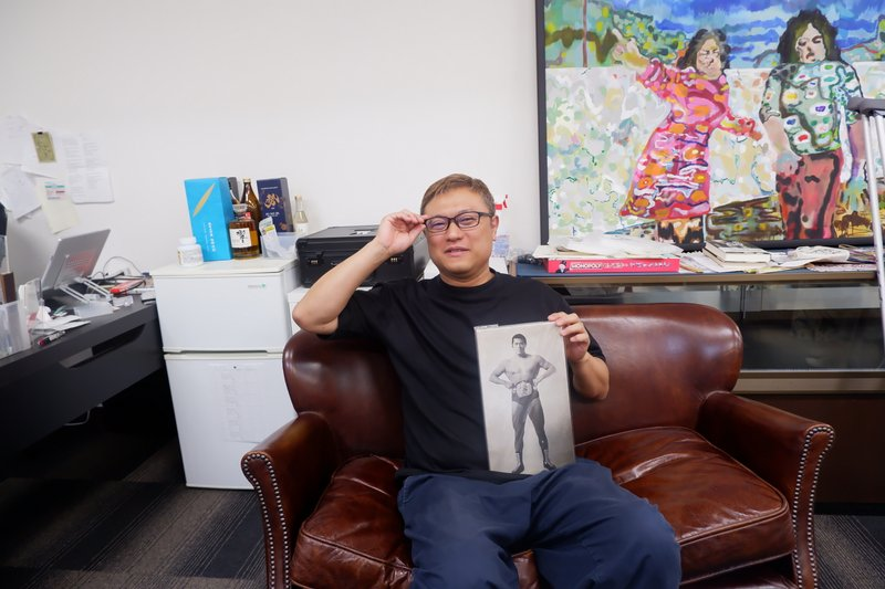 ・社内にプロレス関連のグッズがたくさん飾ってある