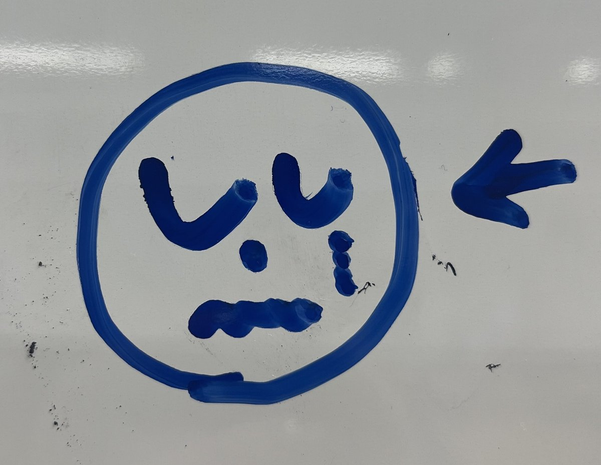 1から10までの数値と名前がホワイトボードに書かれており、毎朝自分で該当の数値に磁石を置くことで可視化されます。