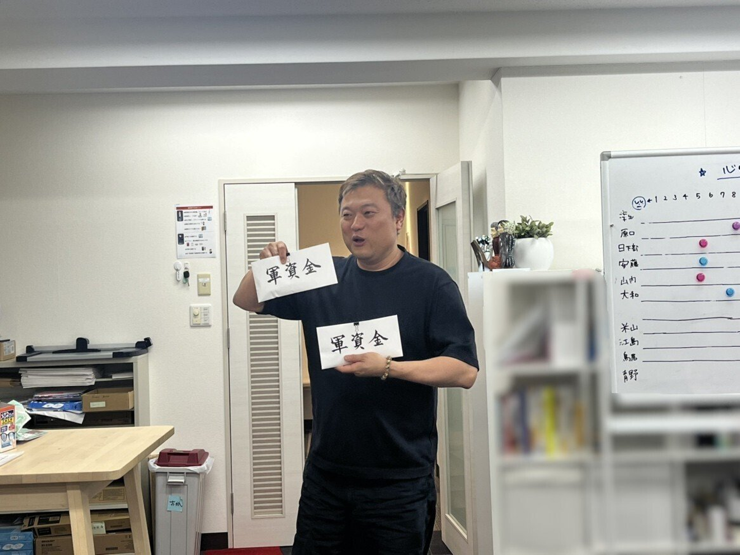 安藤さんが書いた「軍資金」の文字が綺麗すぎて、この表情の幸田さん
