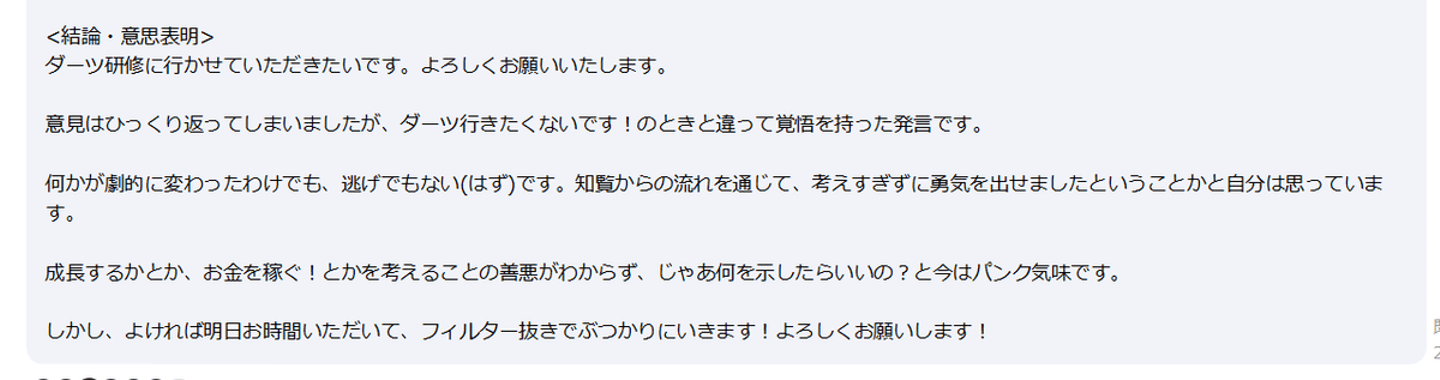 もう1つは、GWに地元に帰りたくて、もしダーツに行くことになったら帰れなくなる可能性があると思って、嫌な気持ちになっていたからです。