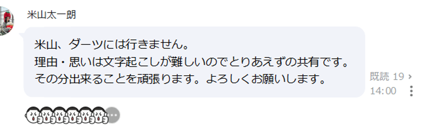 「今日の14時タイムリミットにするから、それまでに行くか行かないか決めて」と言われた米山くんは、