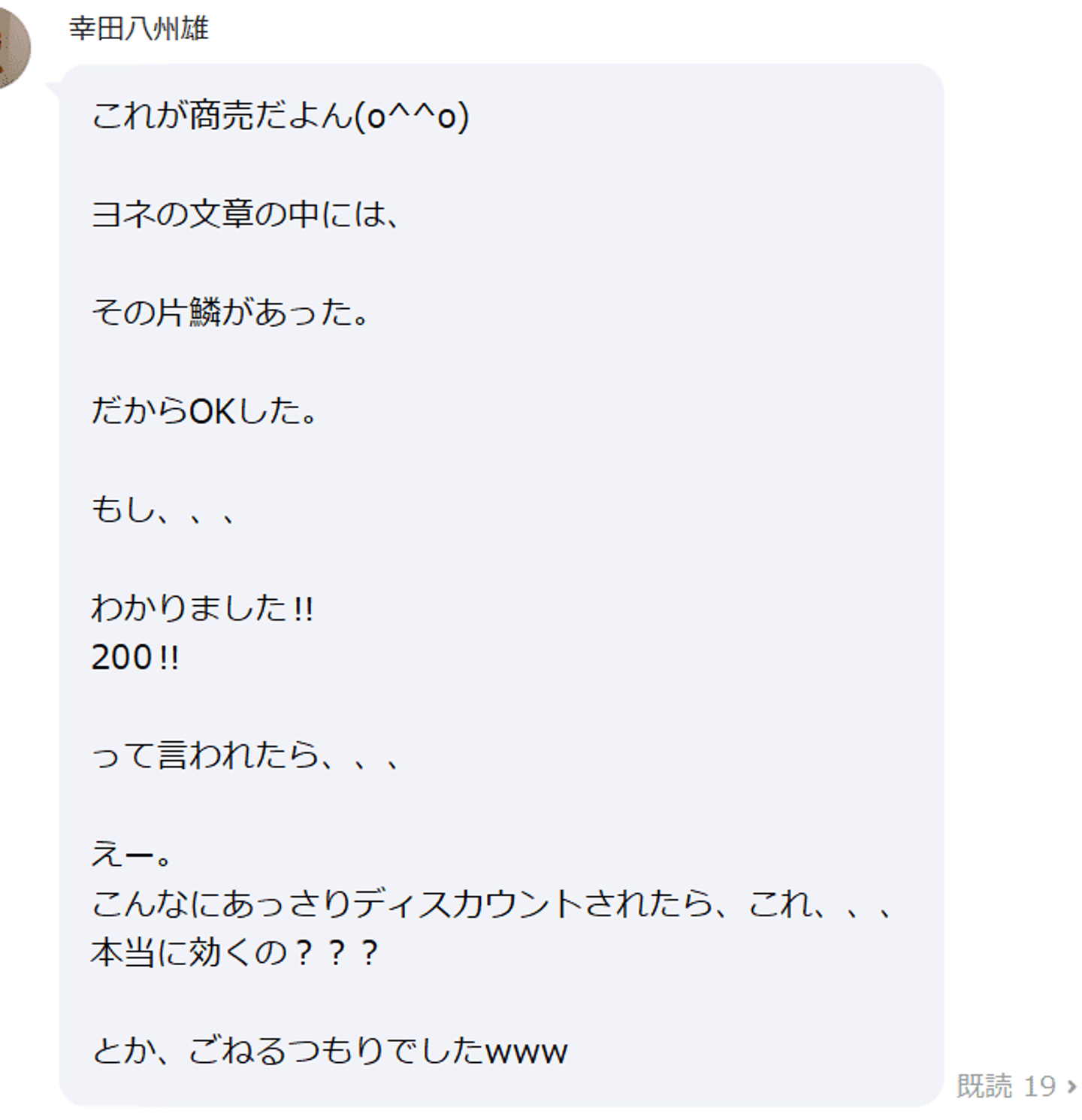 幸田「よっしゃ‼200包3万円で握手やで‼」