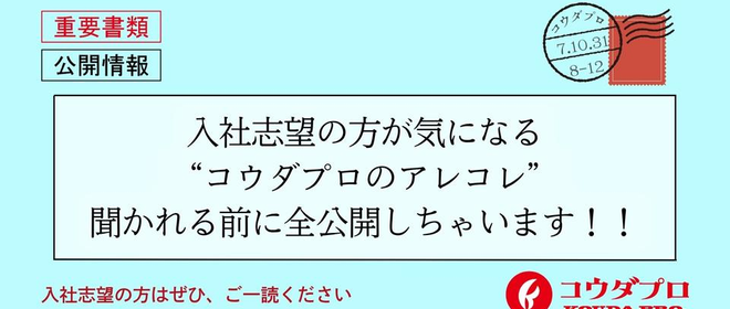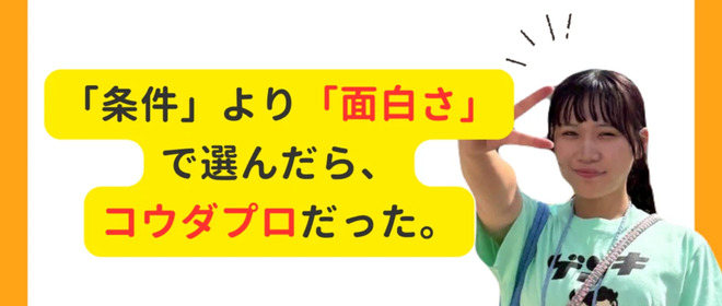 こんにちは!未来開発室の米山です!コウダプロに興味を持ってくださっている方や、就活中の方の中には「選考過程でどんなことが起こるのだろう?」と気になる方も多いのではないでしょうか👀本日は、そんな気になる疑問に、社員の入社前の経歴も交えてお答えしていく、連載「入社までのキセキ」第8回をお届けしてまいります。今回は2023年10月に中途入社された、ヒット屋・独創本部の安藤さんにお話をうかがいました。“普通ではない選考”を経てコウダプロに入社し、働くママとしてキャリアを再起動させた安藤さんの物語を、インタビューを通してお伝えしていきます!安藤さんについてはこちらからも!それでは、安藤さんよろしく...