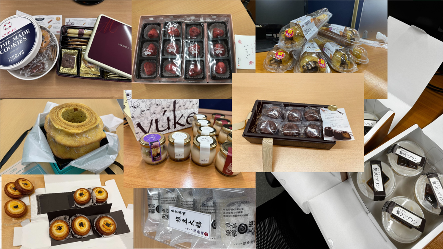おやつタイムを楽しむ工夫:時には食べたいお菓子のアンケートを取ったり、会社周辺の行ったことのないお店を開拓するなど、毎回趣向を凝らしたおやつタイムを実施しています。