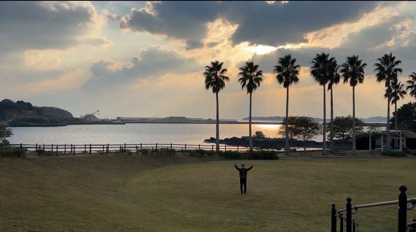 そして弁天崎公園に到着しました。遊具や散歩道が整っていて、島らしいゆったりとした空気が流れる場所です。夕方の静かな光が公園全体を包み込んでいて、景色は本当に最高でした。普段の生活ではなかなか感じられない自然に触れ、心がふっと軽くなるような感覚でした。