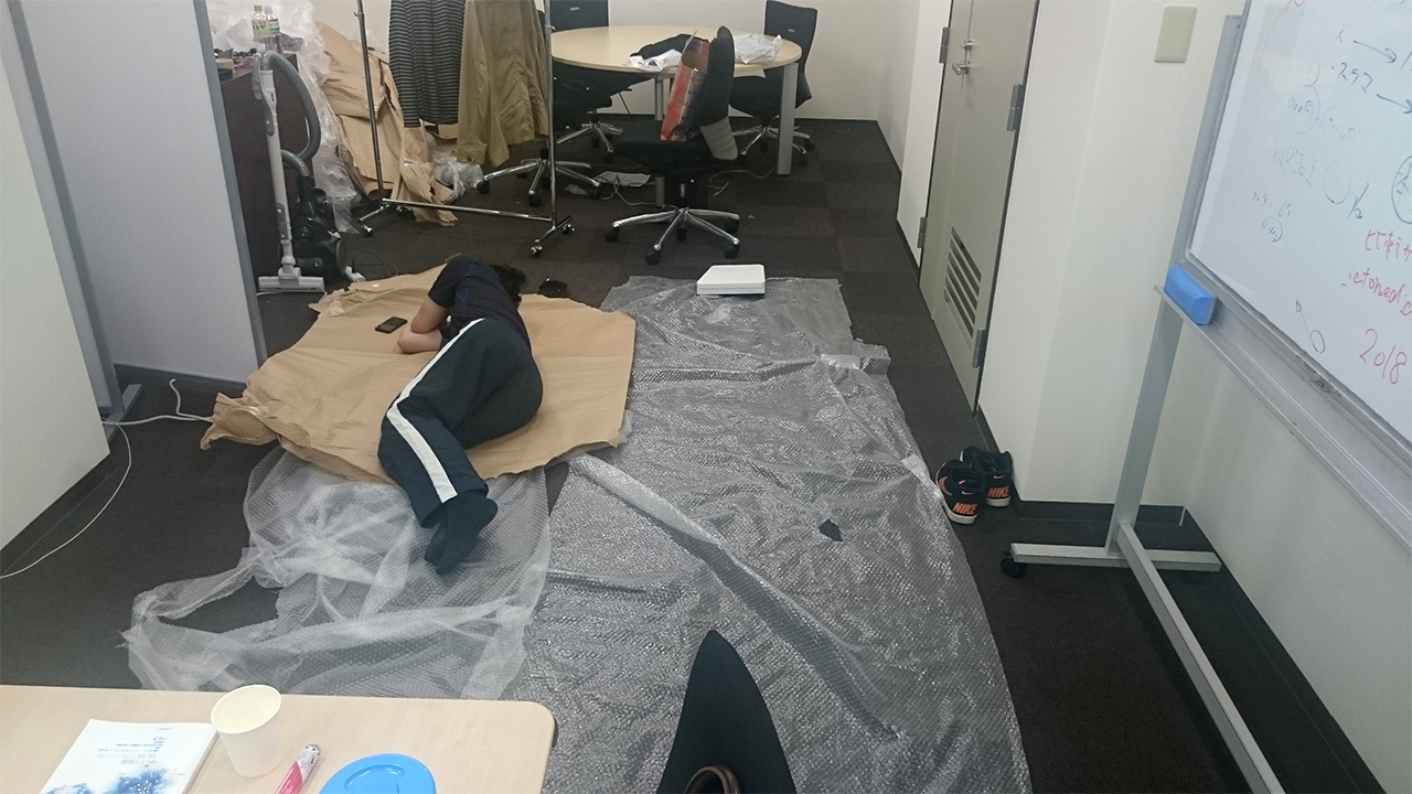 あ、あとは1社目の時、数日間家に帰らないときもあり、事務所で緩衝材のプチプチを敷いて、ダンボールを被って寝る、みたいなこともしばしば…(笑)