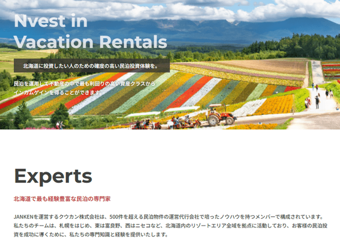 JANKENは、北海道で民泊投資を始めたい民泊投資家のための総合サービスサイトです。