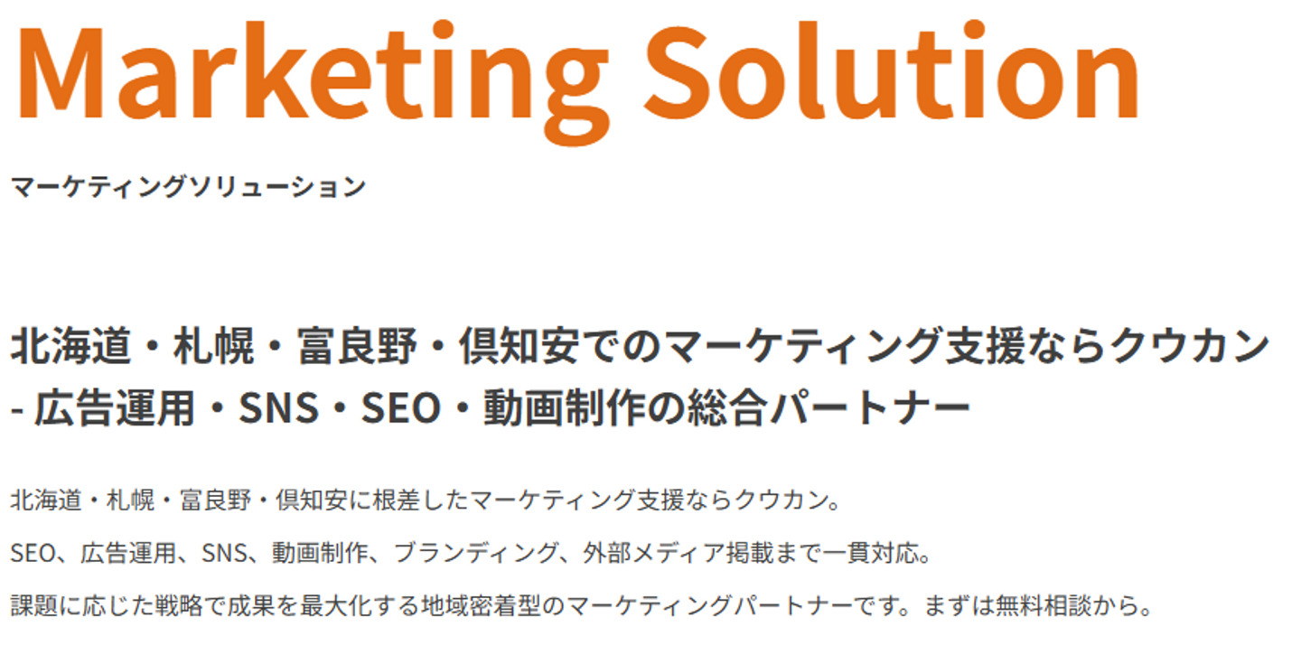 特に観光、不動産、建築分野では、北海道という土地の特性や市場動向を熟知していることが強み。例えば、海外の投資家向けに、四季や自然環境を訴求する広告キャンペーンを展開し、問い合わせ数を2倍にした事例もあります。