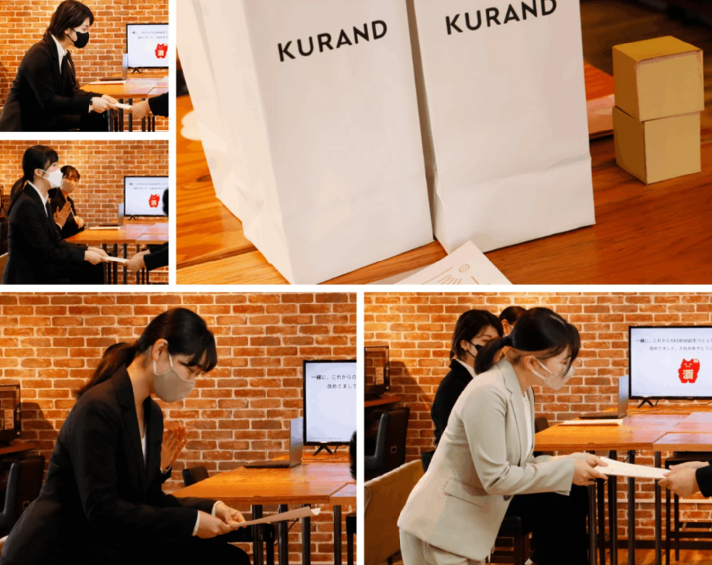 入社式では、代表と人事からのメッセージ、入社証書授与、記念品の贈答を行いました。数多くの会社の中から、KURANDを選んでくれたこと、とても嬉しく思っています。