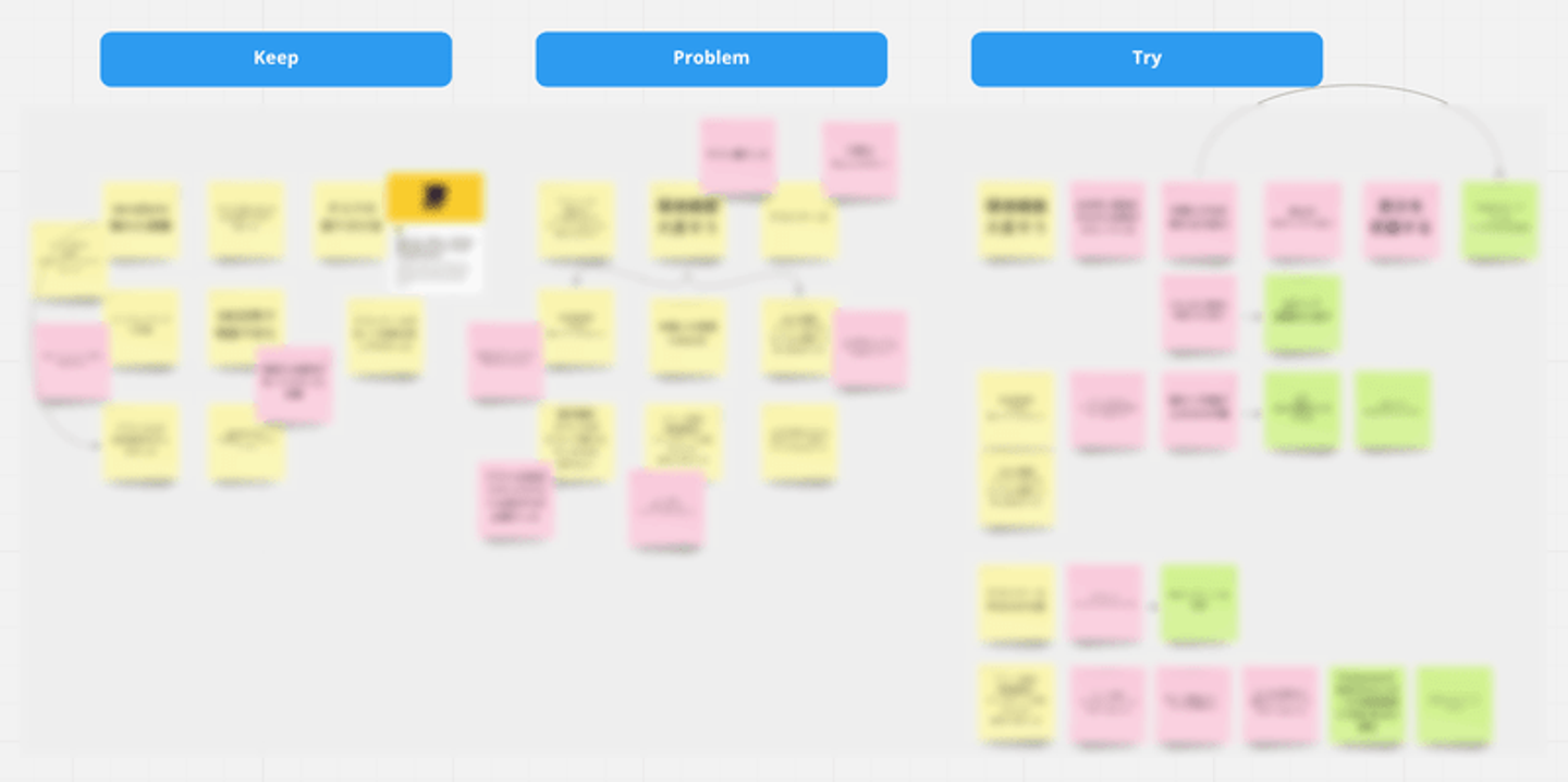 KPTの方式で、よかったところ、課題を洗い出し、次のアクションにつなげます。