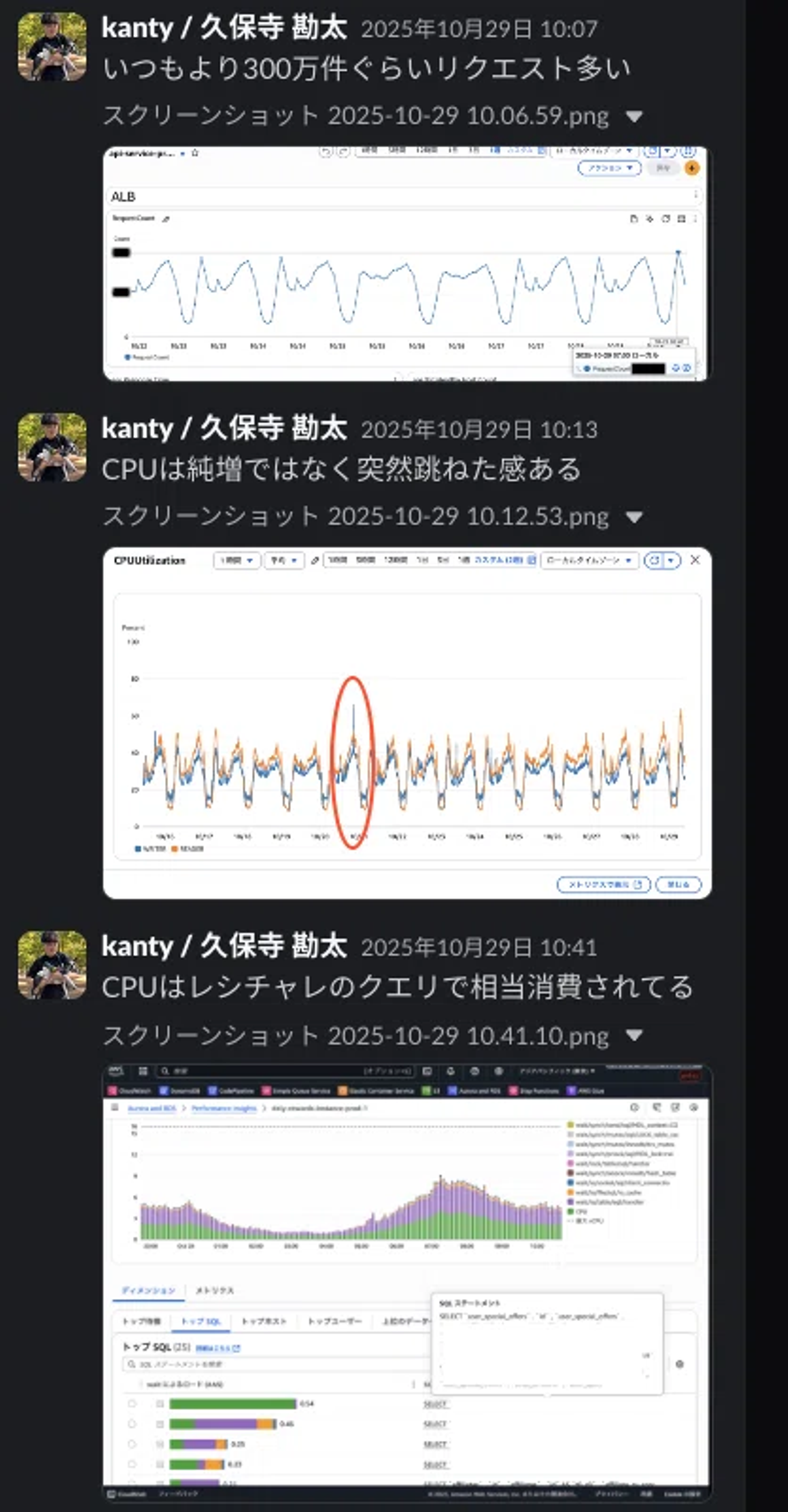 異常を検知したら、スロークエリのログやメトリクスのスパイク、エラーの増加傾向などを追って 自ら障害調査までを担うのがクラシルのフルサイクル開発です。