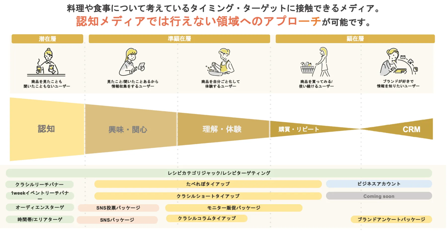 このクラシルならではの高品質なコンテンツと、食に感度の高いユーザーへのリーチ力を活用して、クライアント様の商品やブランドの認知獲得から購買促進までサポートするのが「ブランドパートナー事業部」です。
