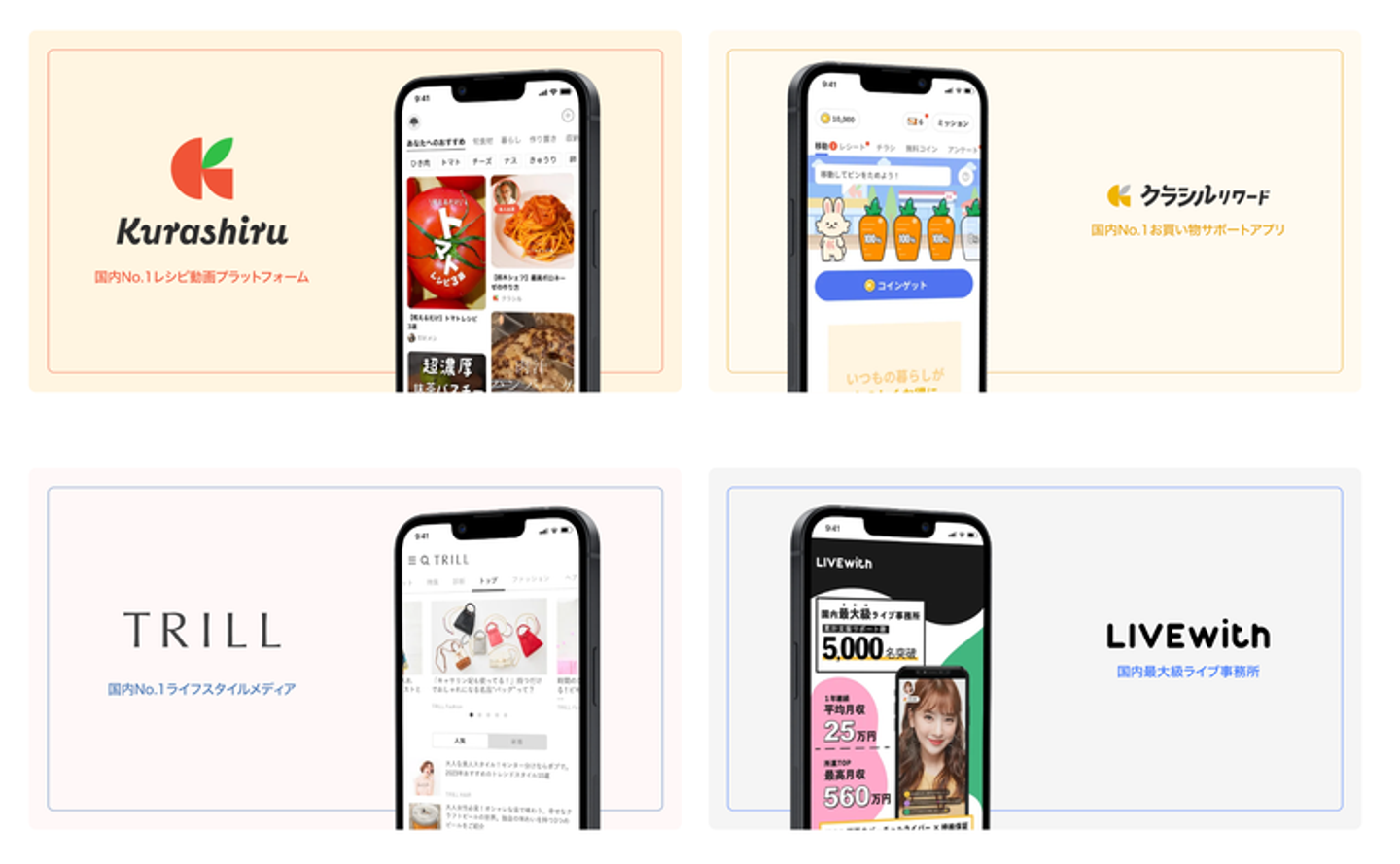 レシピ動画プラットフォーム「クラシル」のアプリは4,100万DLを突破し、国内最大級のライフスタイルメディア「TRILL」は国内最大級のライフスタイルメディアに。