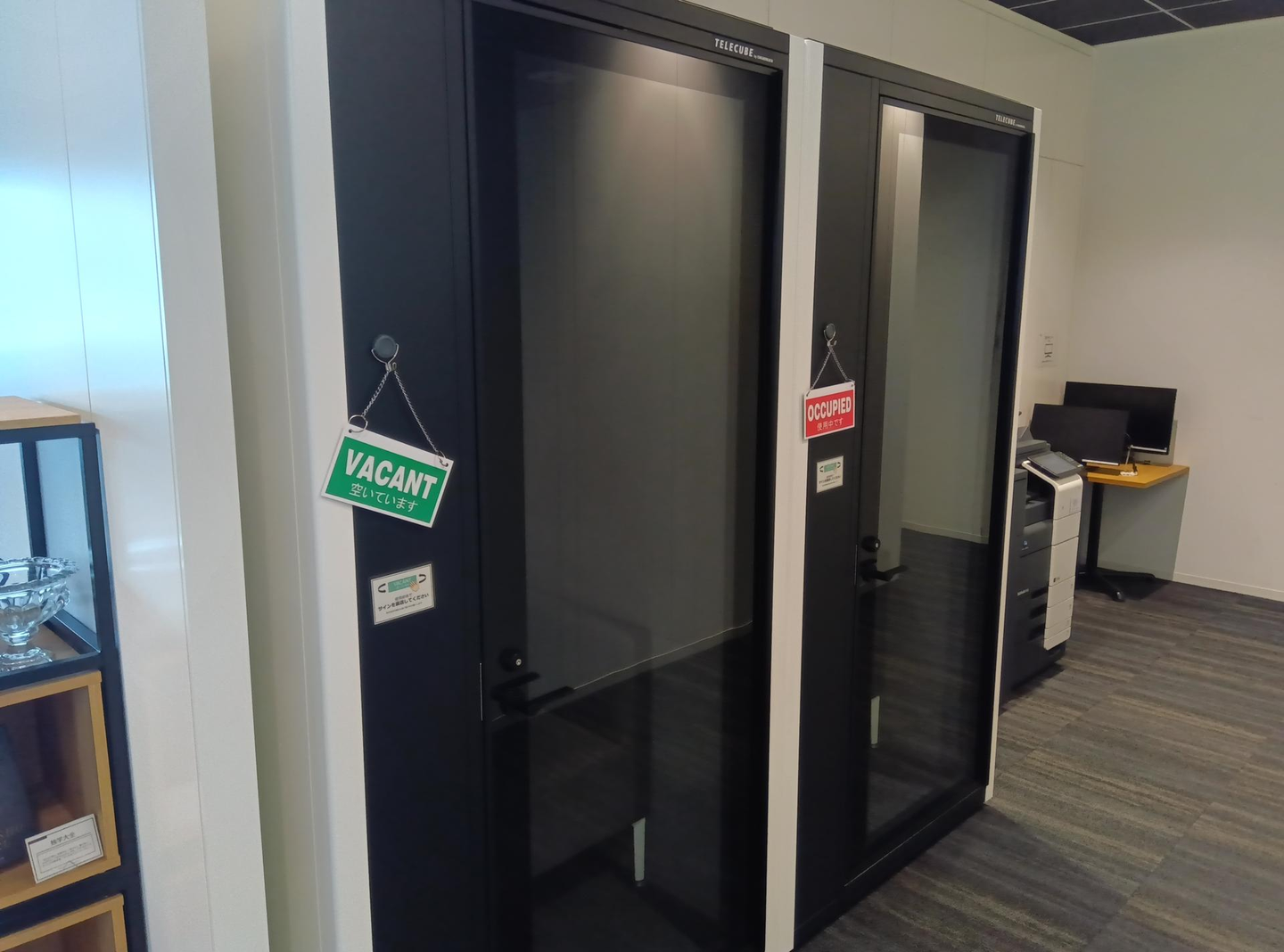 電話をかけたいとき、大事な商談のとき、外界をシャットアウトしたいときは、個別ブースも利用できます。(1回1時間まで)