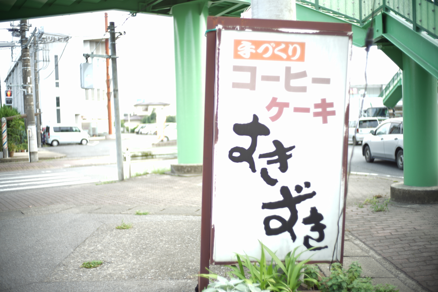 手作りのコーヒーとケーキが売りの『すきずき』。なかなか年季の入った看板ですね。いい味を出してます。このようなタイプのお店は旅先でないとなかなか入るチャンスない、ということでこのお店でコーヒーとケーキを味わいながら、軽く作業することになりました。