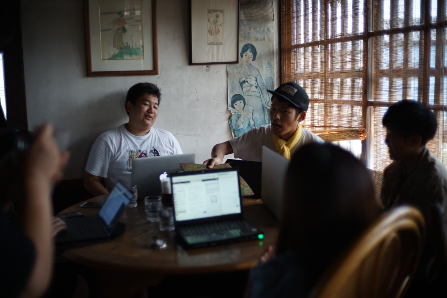 テーブルに座り、飲み物を注文。各々のノートパソコンを開いてさっそく作業をはじめます。