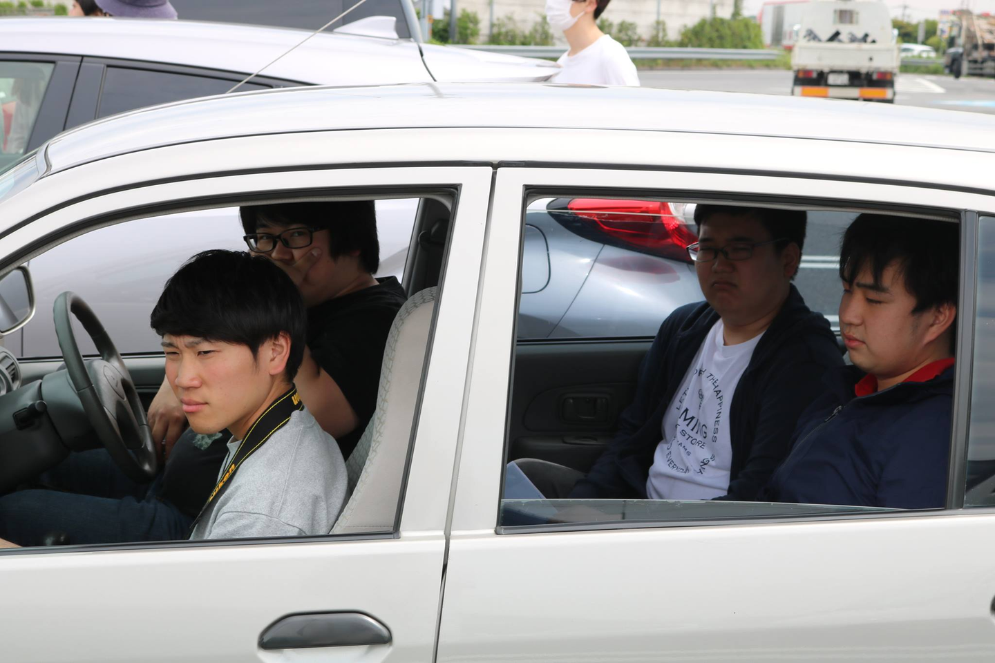 続いて第四位はこちらのチーム。さすがにこの人数でのコンパクトカー、なおかつ長時間移動ですと、身動きが取れない印象もありますが、仲の良いグループなのでここも問題はないでしょう!