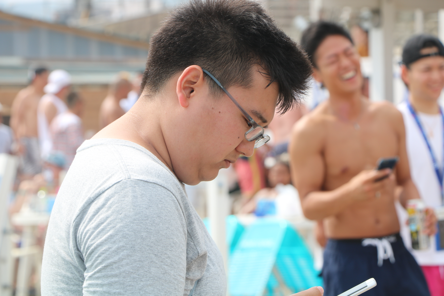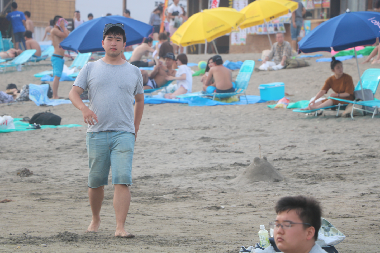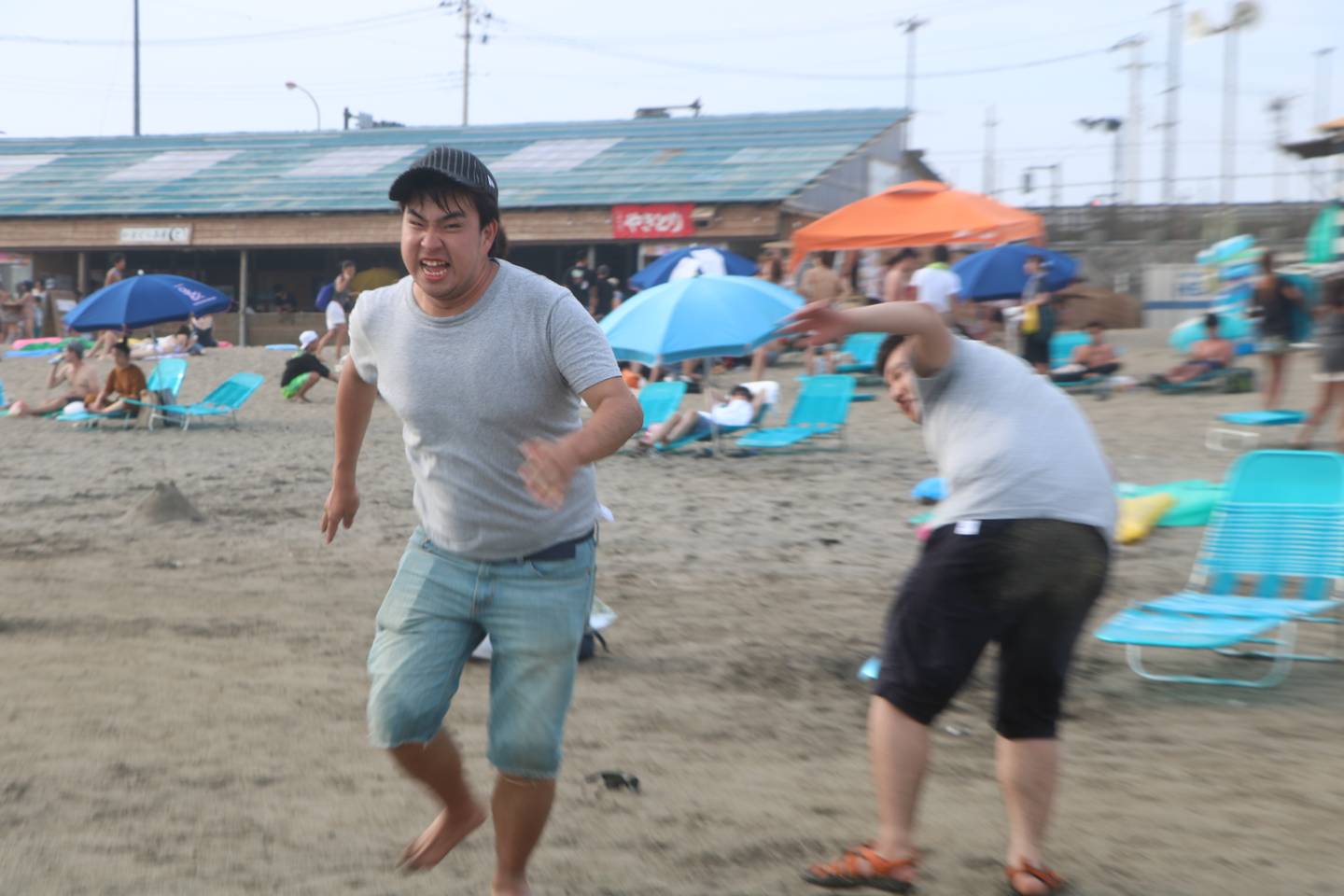 勇気を振り絞り、水着ギャル2組に話しかけましたが、アンケートを聞けた人数は0人の社長。