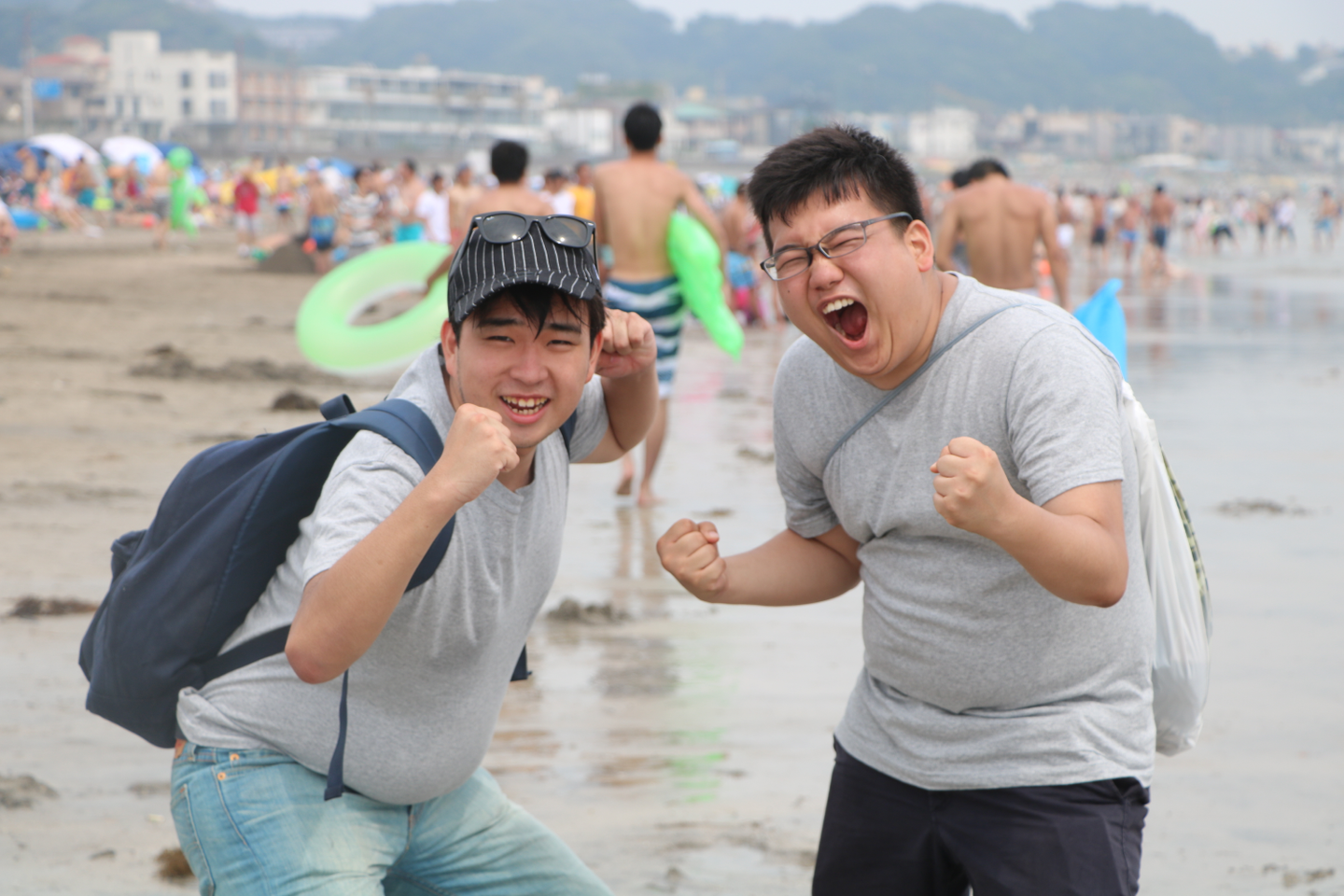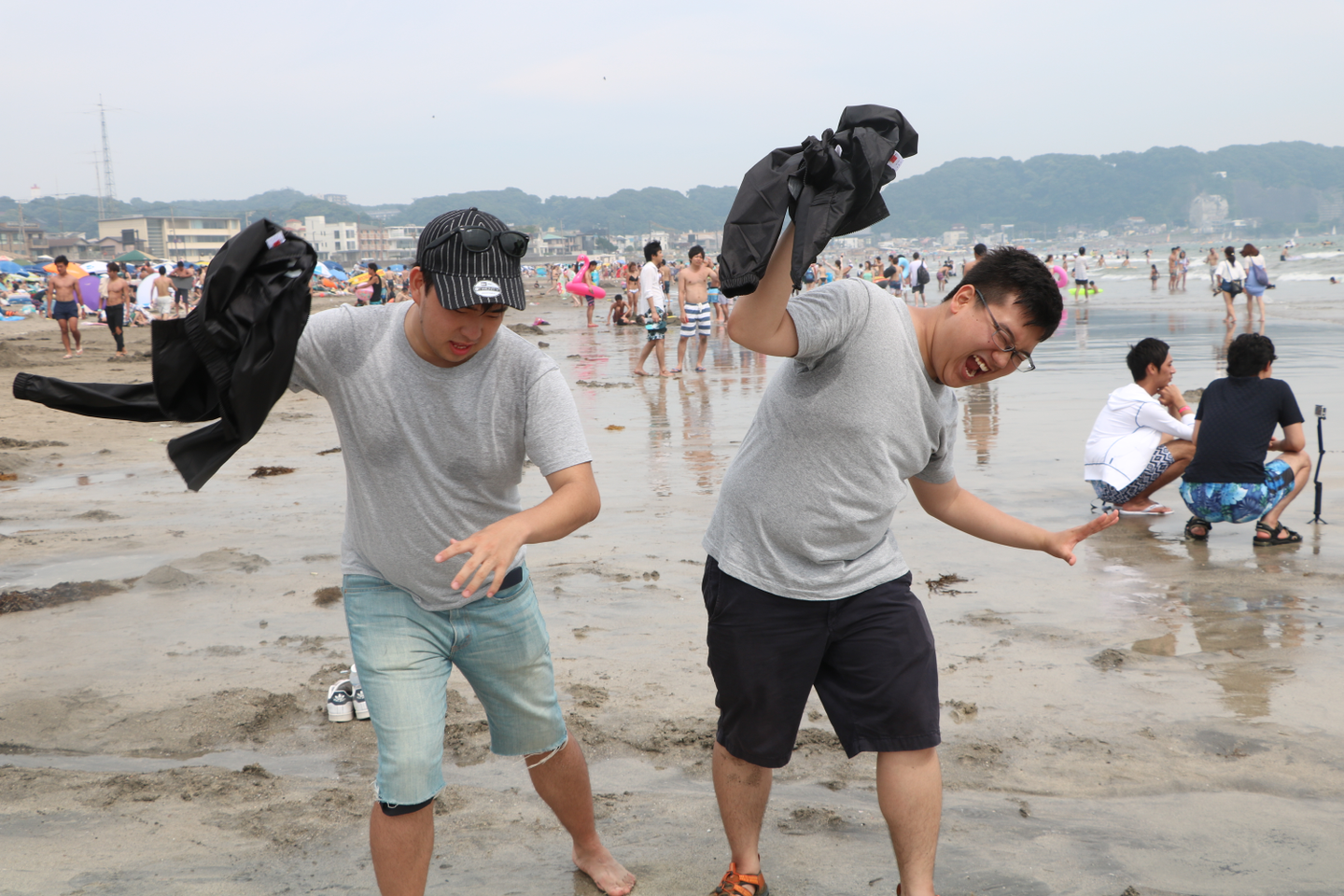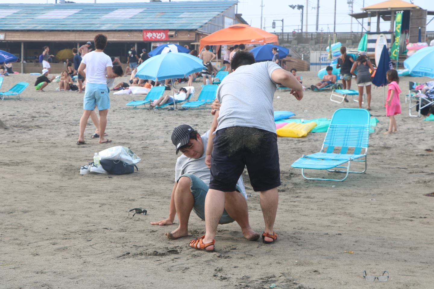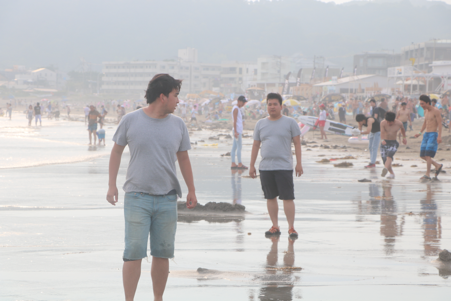 勇気を振り絞り、水着ギャル2組に話しかけましたが、アンケートを聞けた人数は0人の社長。