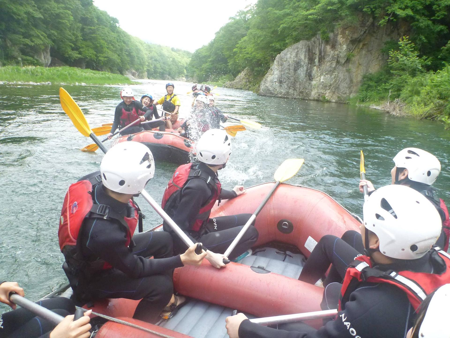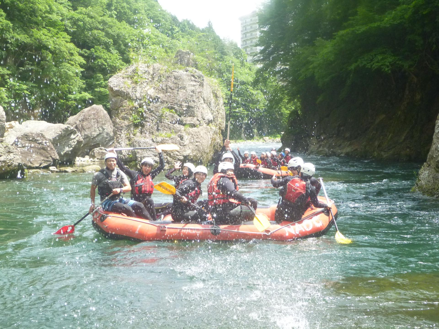 温泉合宿二日目は、日光の鬼怒川で「ラフティング」体験