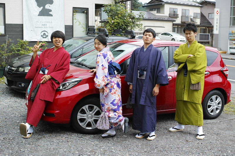日産 ノートeパワーの鮮やかな色とマッチして着物なのにモダンな雰囲気も感じます。