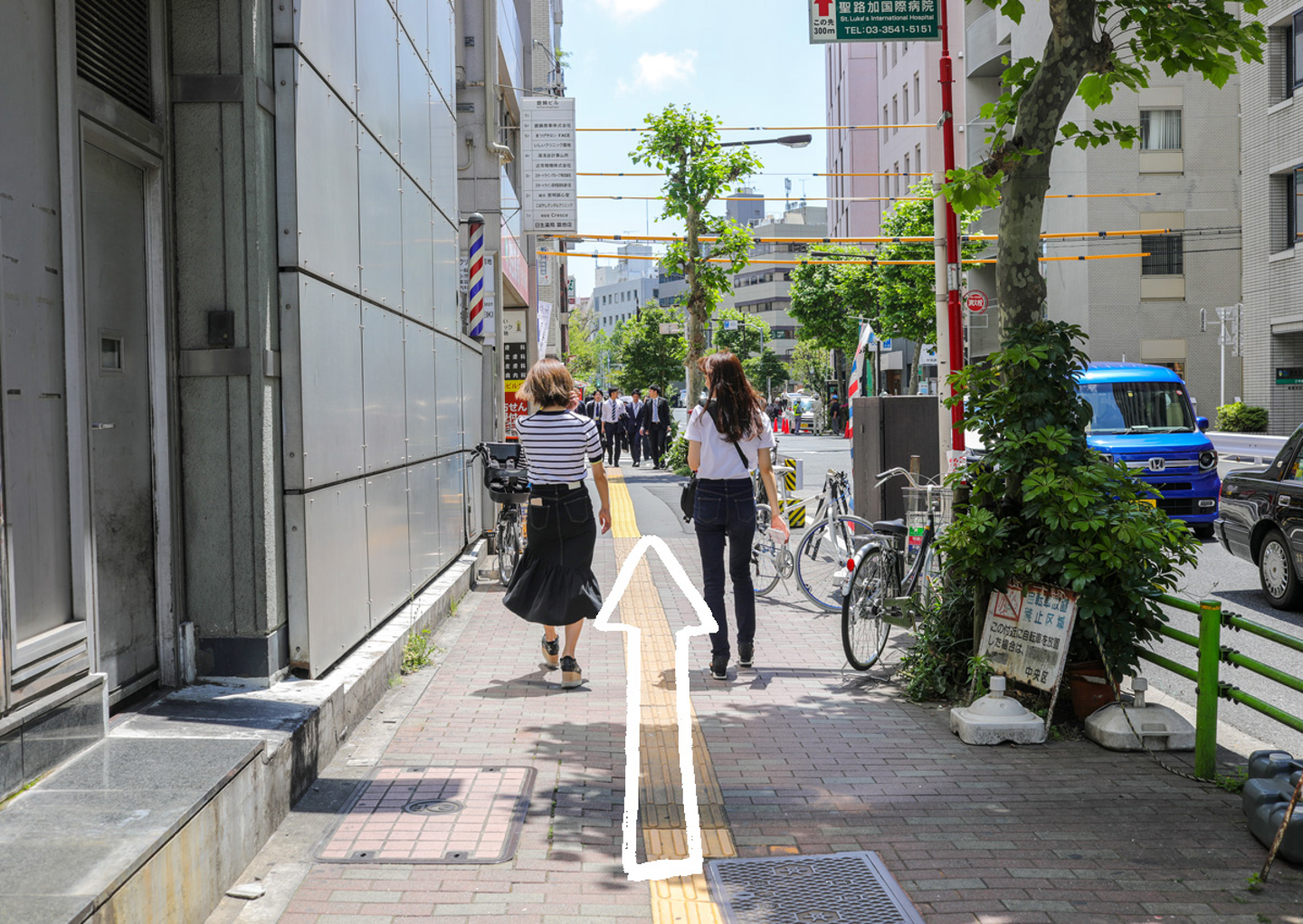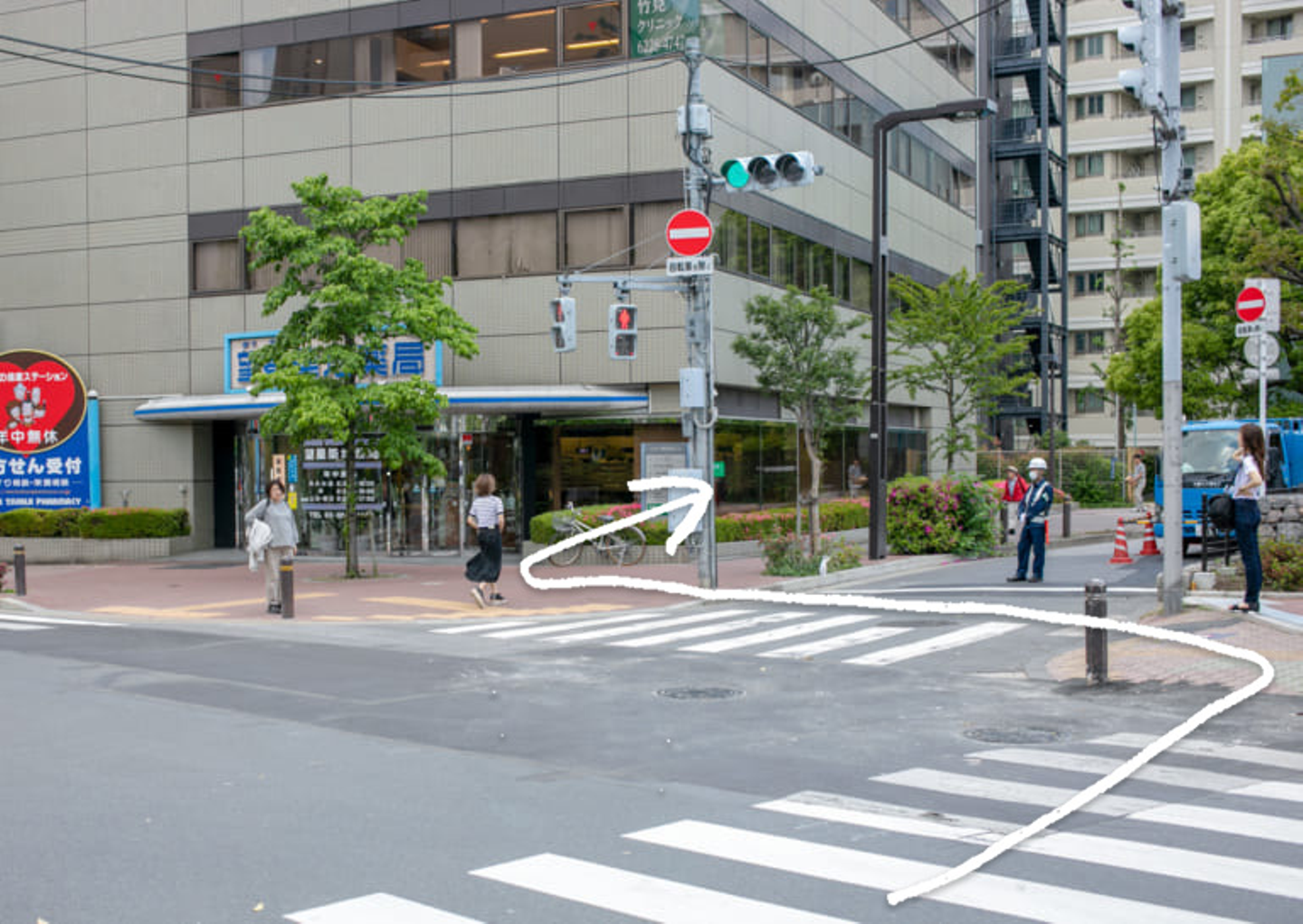望星築地薬局さんが見えたら、横断歩道を渡ります。
