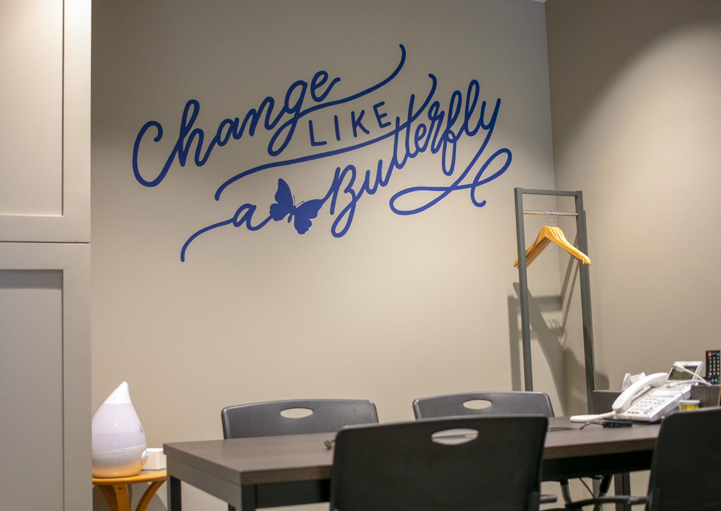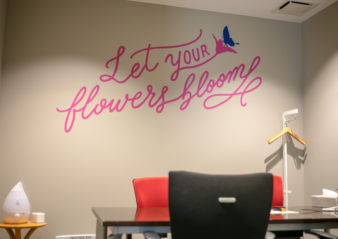 セミナールームは社外の人も多く利用するため、ウォールアートも社外に向けたメッセージになっています。