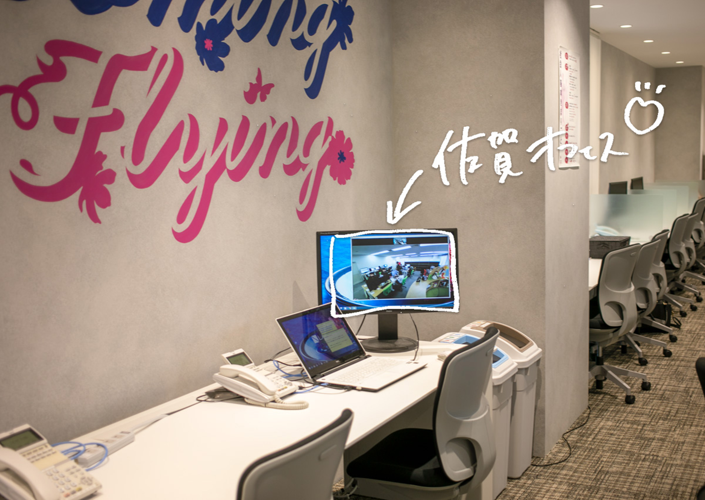 執務室の中央にはモニターが置かれており、佐賀支社の様子をリアルタイムで見ることができます!