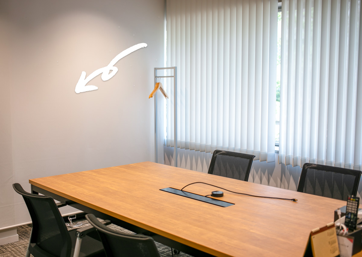 会議室の奥は、壁のように見えて実は隠し倉庫なんですね!