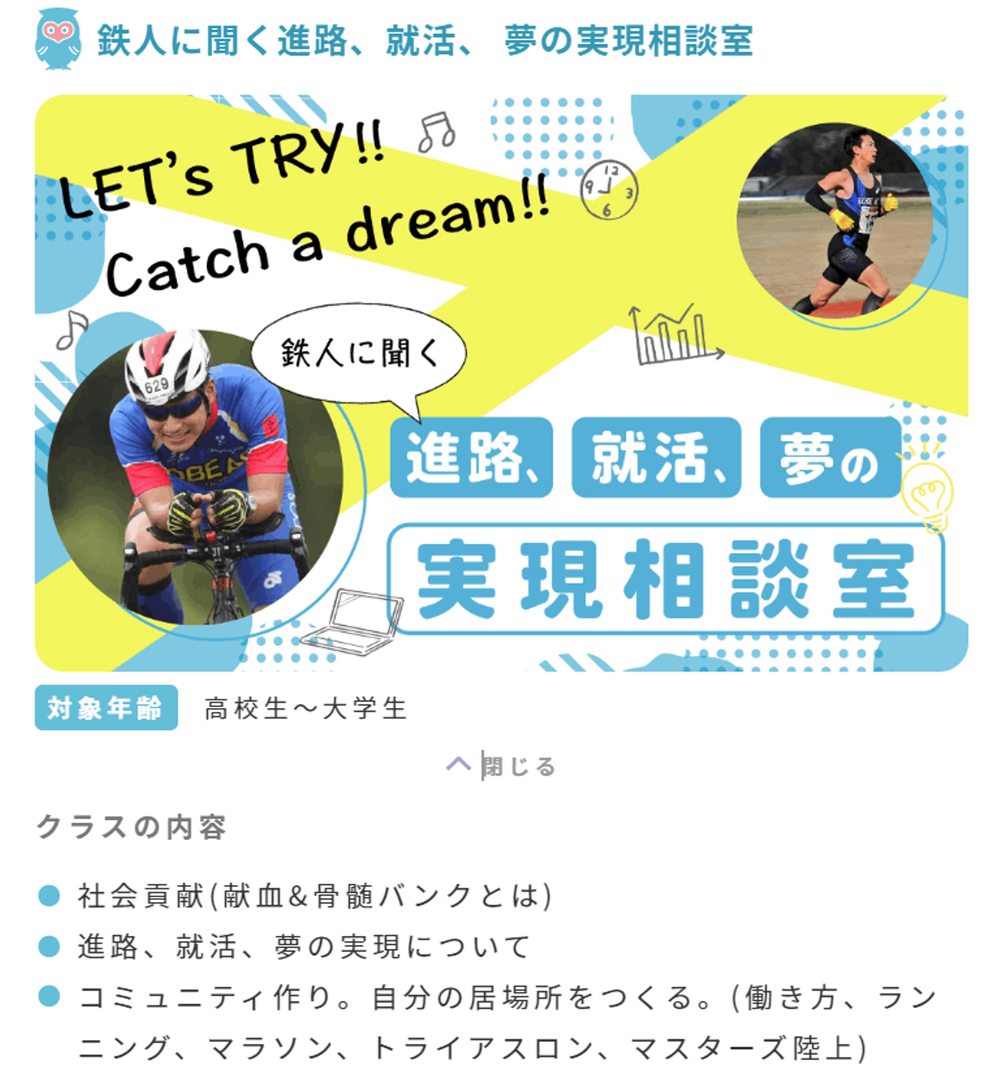 無料特別クラスでは「進路、就活、夢の実現相談室」というタイトルを設定させていただきました。