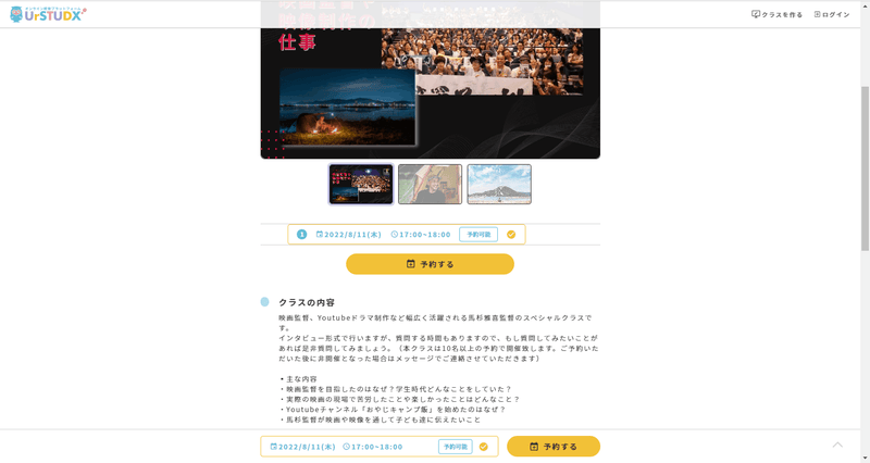 まずはご登録後、下記のご案内を参考に無料クラスを体験してみましょう。現在(2022年8月)、「事前登録キャンペーン」と「早期登録キャンペーン」の特典として、全てのクラスが無料で受講できます。