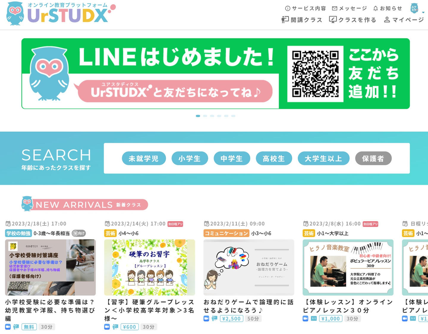 UrSTUDX(以下、ユアスタ)は、誰もが先生になることができ、学習者であれば誰もが生徒になることができる、オンライン教育プラットフォームサービスです。