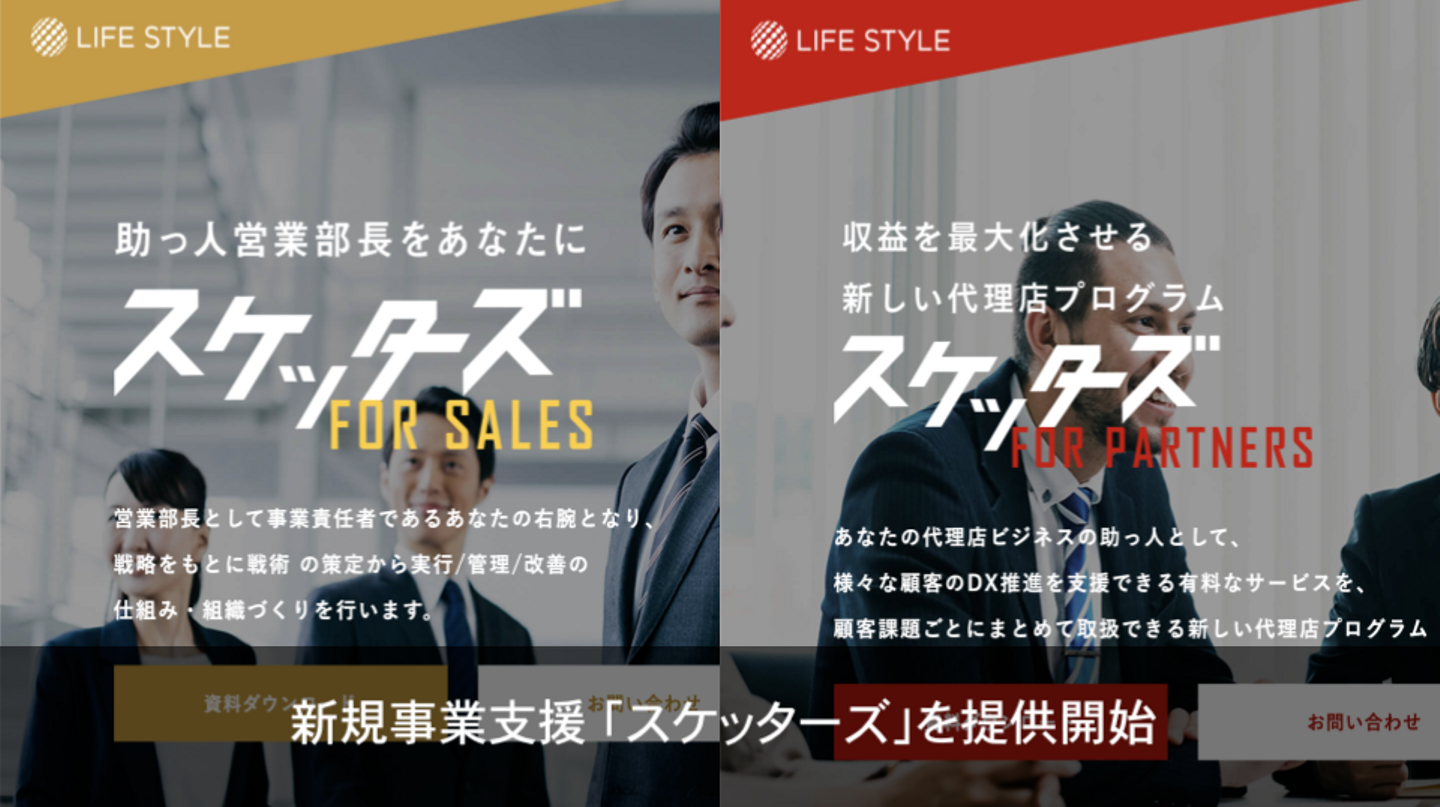 これまでLIFE STYLEでは、スケッターズ FOR SALESで、戦略策定からカスタマーサクセスまでの実行リソース(営業部隊)を、スケッターズ FOR PARTNERSで、代理店を活用した営業活動を支援をしてきました。要するに、これまでは実行リソースと代理店網構築プログラムによって対価を受け、支援活動の中で活用するナレッジは付加価値として無償提供していたのです。