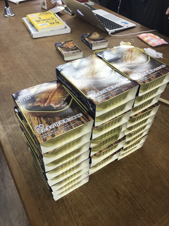 購入していただいた方に美味しいサンマ缶をお届けするべく、会社内で幾つかの商品の試食を重ね、こちらの缶詰をお送りすることになりました。サンマの甘辛煮(山椒風味)と塩焼き(かぼす風味)です。社内に一時、サンマの匂いがふんわりと立ち込めました!