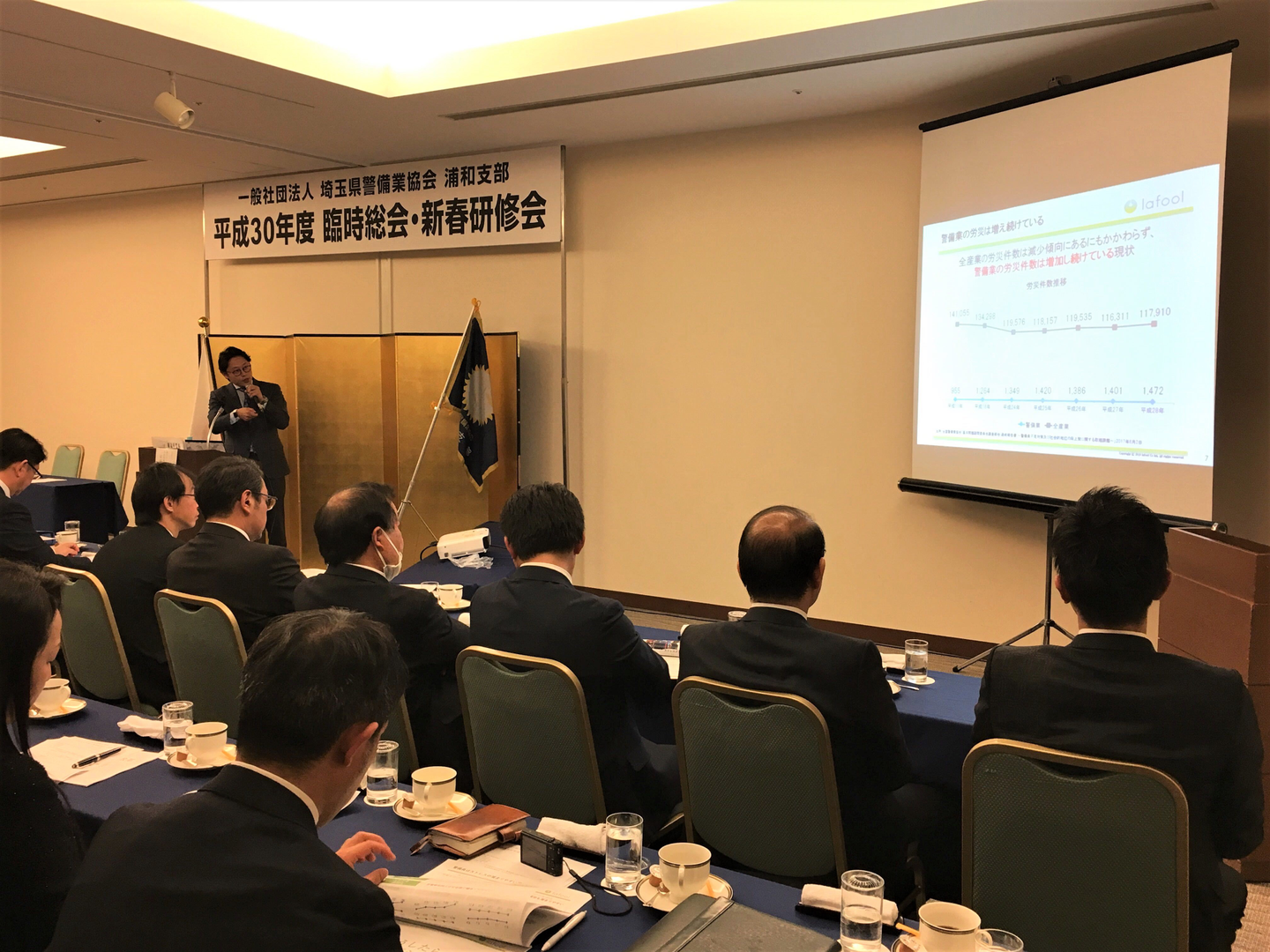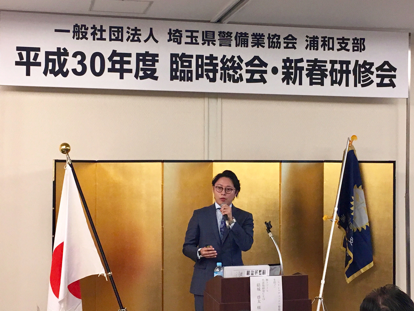 一般社団法人埼玉警備業協会 浦和支部の臨時総会にお招きいただき、警備保障会社様向けに弊社代表結城が登壇をさせていただきました!