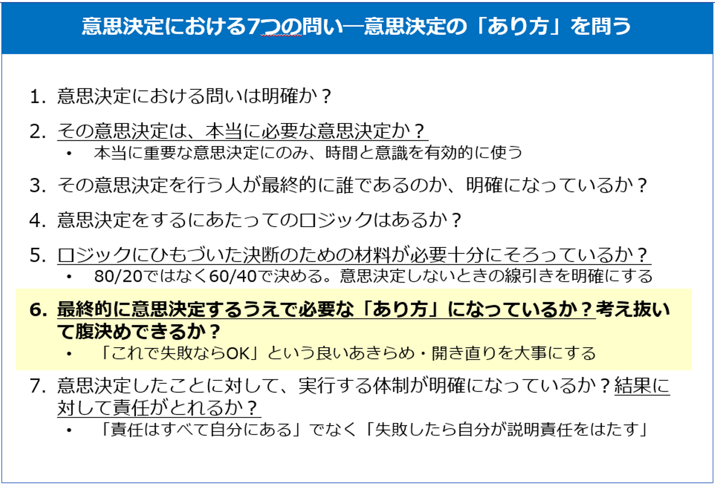 ・意思決定の「あり方」―考え抜いた先にある「開き直り」の境地で意思決定する