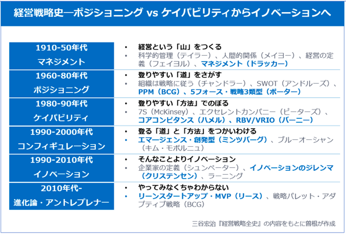 ・経営戦略史:ポジションニングとケイパビリティの争いからイノベーションの時代へ